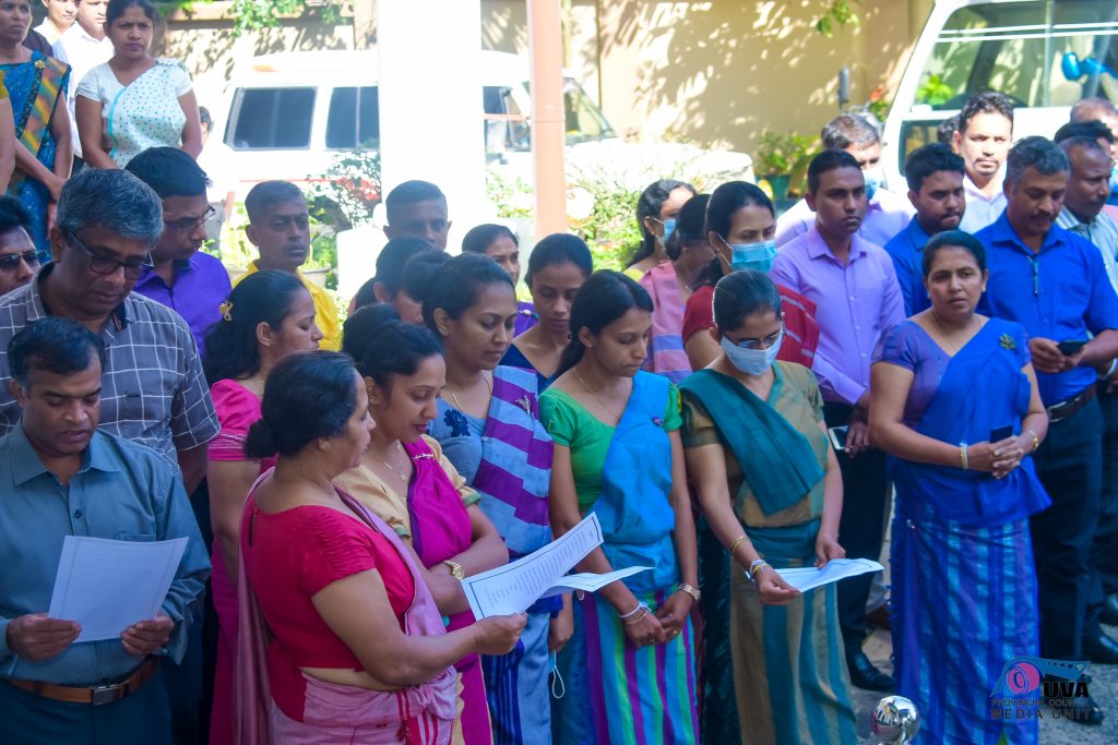 ඌව පළාත් සභාවේ නිළධාරීන් සියලුම දෙනා නව වසරේ රාජකාරියට පැමිණි අද 02 දිනයේ ප්රථමයෙන්ම ආගමික වතාවත් වලට සහභාගි වී පසුව ජතික ගීය හා ඌව ගීතය ගායනා කිරීමෙන් අනතුරුව රාජ්ය සේවා ප්රතිඥාව කියවා රාජකාරි ආරම්භ කිරීම සිදුවිය.